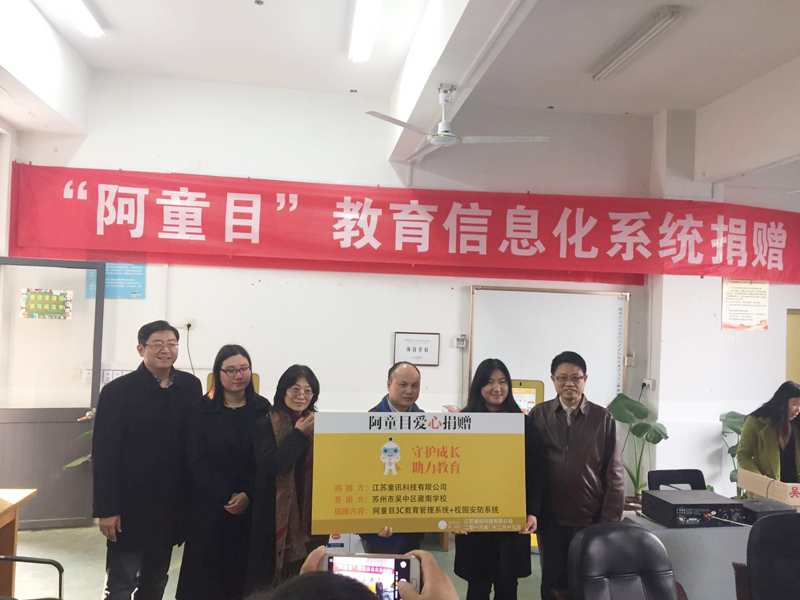 所以,我們“阿童目”來了。免費為藏南學校捐贈智能化家校共育教育管理系統和校園安防系統。 此次捐贈還吸引了蘇州電視臺教育網記者進行跟蹤采訪,報道這暖心的捐贈活動。