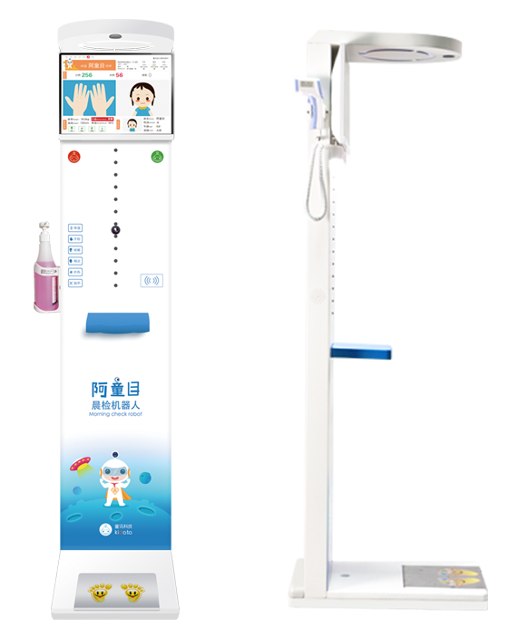 晨檢機器人能自動識別兒童身份,并作出問候。4秒內做出“簽到、自動測溫、手檢、身高、體重”等檢測功能,并拍照留存,實時顯示;以及“體溫、手檢、咳嗽、口腔、外傷、指甲”輔助功能;