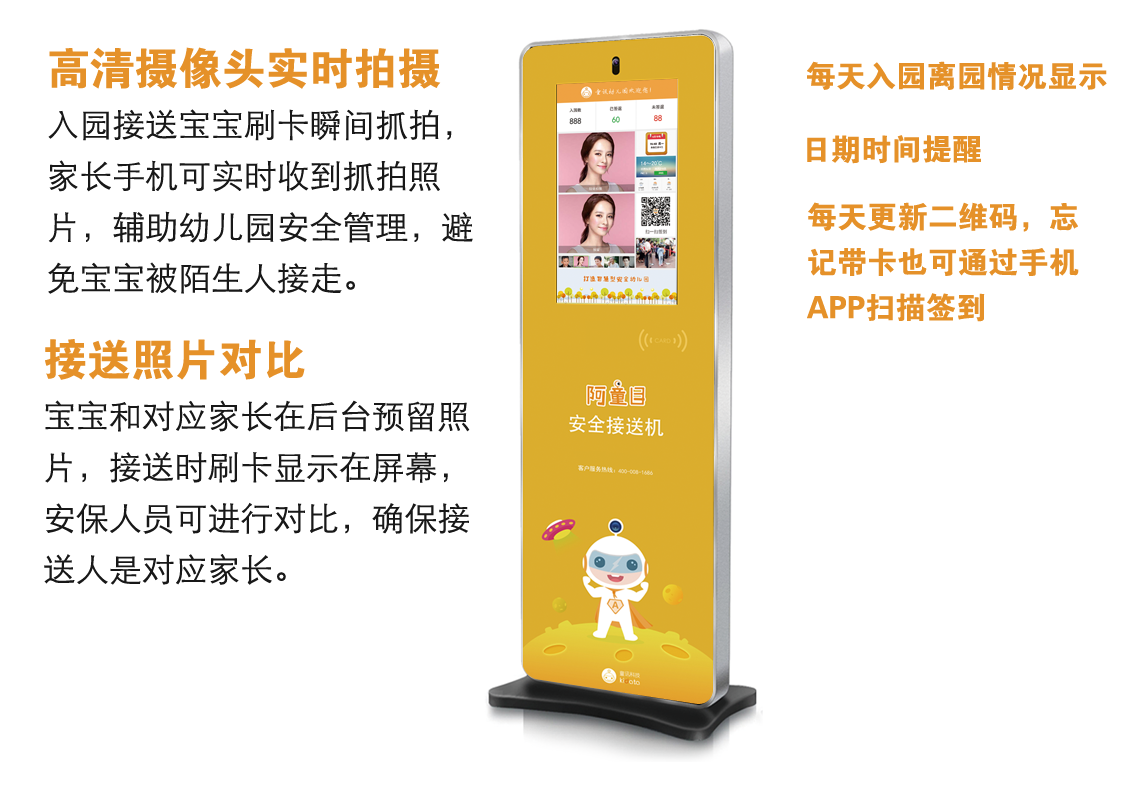 無人刷卡期間,屏幕顯示幼兒園的新聞、通知、活動信息,方便家長、老師查看,對幼兒園起到很好的宣傳作用。