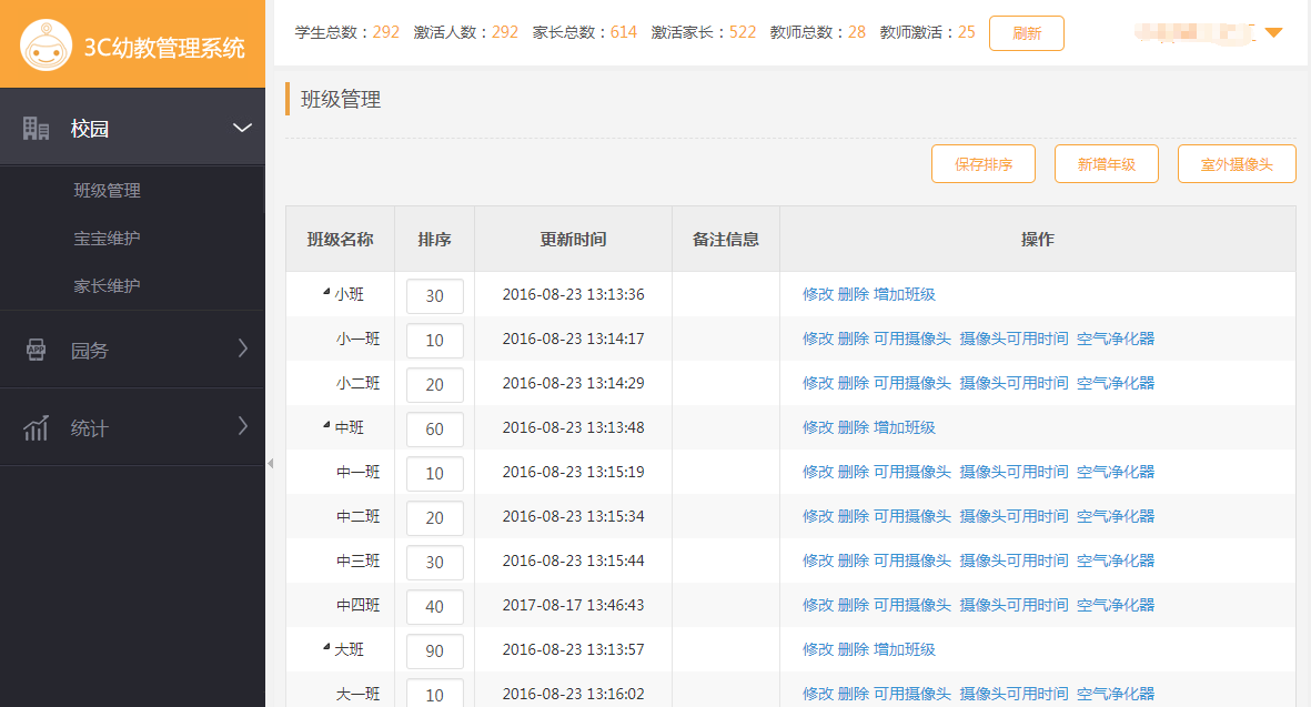 4、出勤/考勤:全市/全區在冊幼兒園兒童出勤狀況,教師考勤狀況,及兒童請假狀況了解;